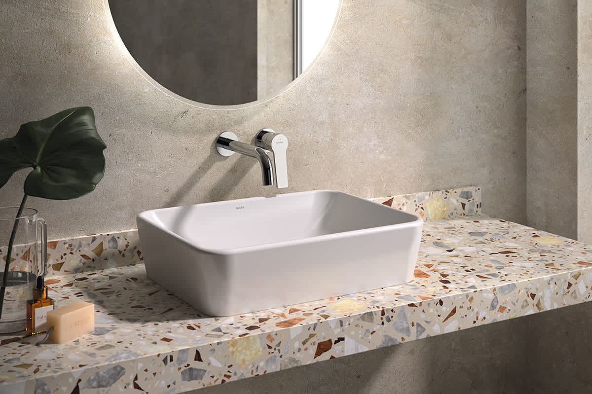 Lavabo de sobre-encimera de 50 x 38 cm. Sin rebosadero. Sin orificio de grifería.Disponible hasta fin de existencias.