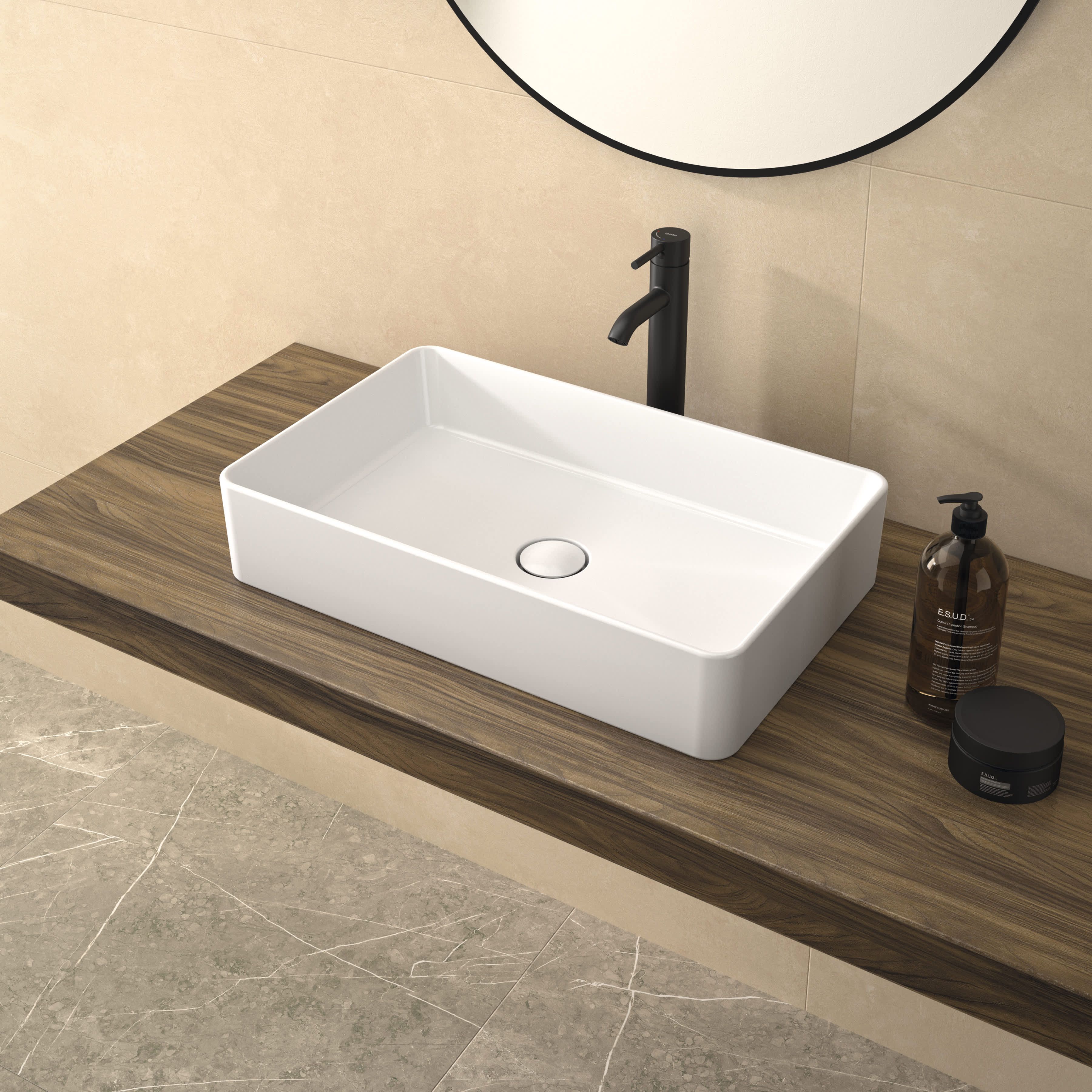 Lavabo Hera 60x38 cm. Sobre-encimera. Sin rebosadero.