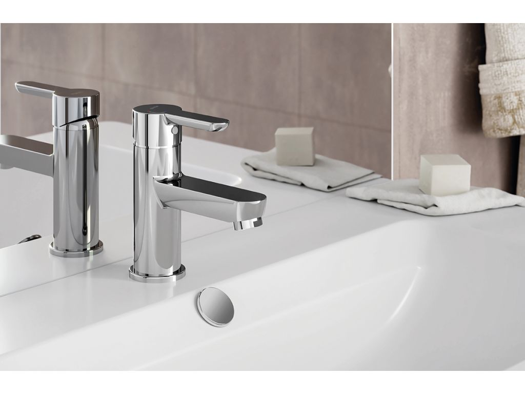Monomando de lavabo con desagüe automático. Enlaces de alimentación flexible de 3/8”. Disponible hasta fin de existencias.